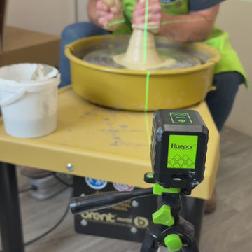 As seen on social media, a neat way of throwing to a defined line, whether height or width. There is an optional extra tripod which will help you create a set up at a distance, to a height and range which will keep the device clean. The light will often be directed to the back of the pot, so you might find throwing in front of a mirror helpful but it’s not essential.