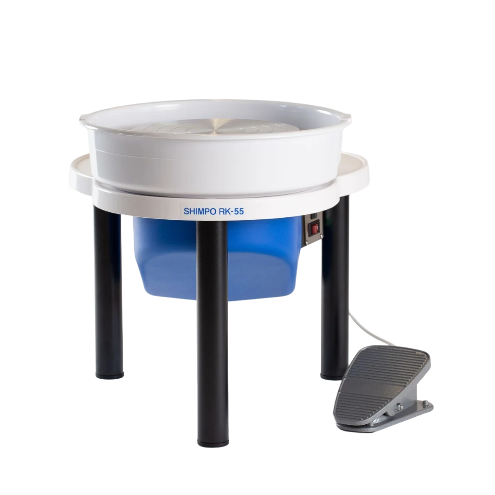 The entry-level Shimpo is belt-driven and lightweight. Perfect for beginners, teachers and pottery trade shows where portability is a consideration.