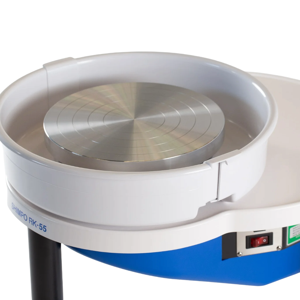 The RK-55 is an established design having been sold for many years. In common with the other wheels in the Shimpo range, it has the 2-piece splash pan, remote foot pedal and the wheel head will rotate clockwise and anticlockwise. The motor’s power is only 100w (1/8 hp), but maybe it’s all you need. It also comes with a 2-year warranty*.